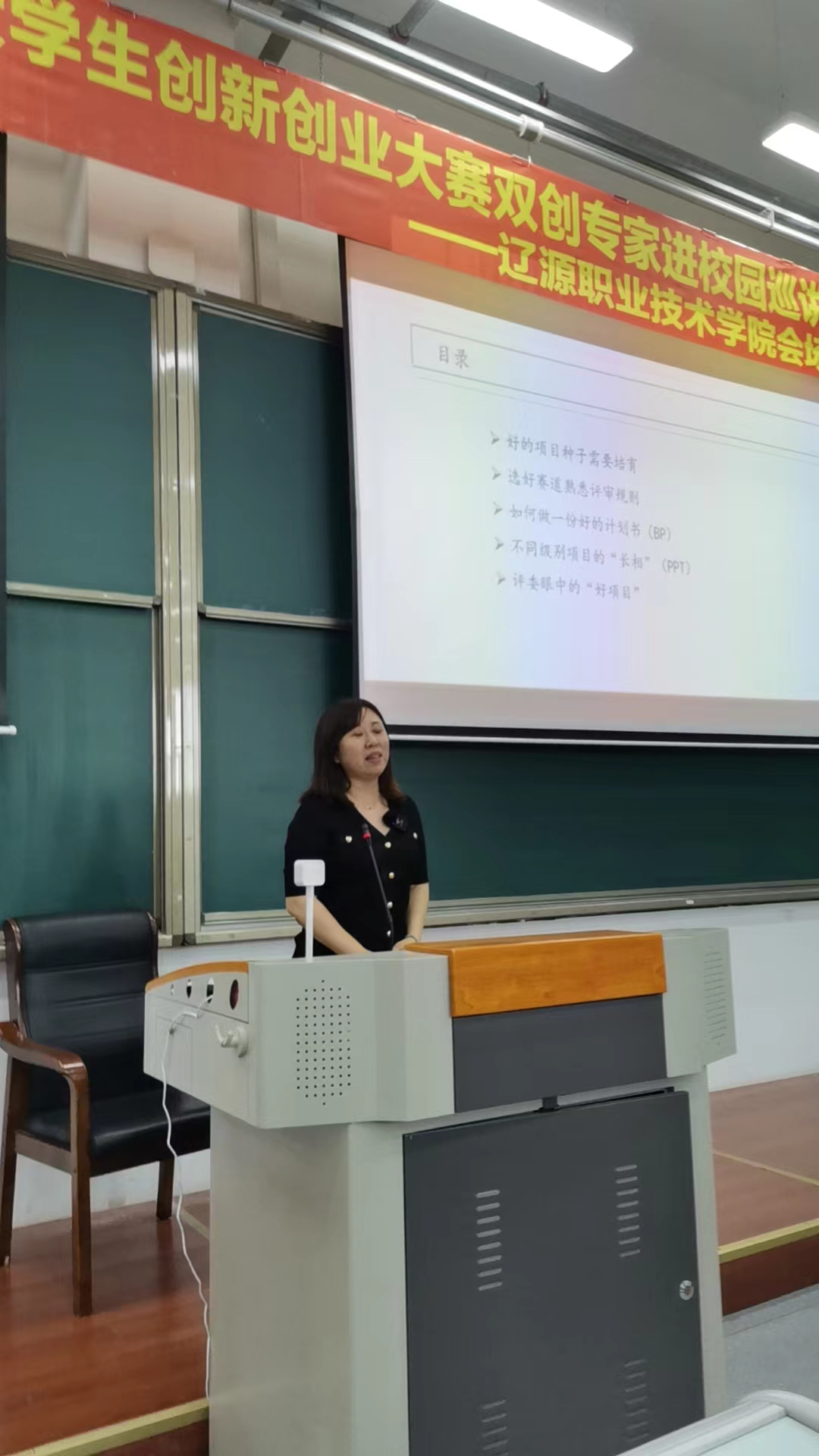 为贯彻落实教育部关于举办第九届中国国际“互联网+大学生创新创业大赛”的通知要求,做好大赛宣传动员和组织工作,提升教师创新创业水平和学生创新创业实践能力。6月3日邀请长春理工大学创新创业副院长王文晶教授来校巡讲,她巡讲的题目是《敢想会创,玉汝于成----学校打造高质量项目的点滴经验》,从五个方面进行了讲述。好的项目种子需要培育;选好赛道熟悉评审规;如何做一份好的计划书;不同级别项目的“长相”PPT;评委眼中的好项目;做了细致地讲解,整个会场全体同学听讲专注,王教授讲述内容深邃,深入浅出,把每一个细节的都讲得出神入化,不时博得学生们阵阵掌声。